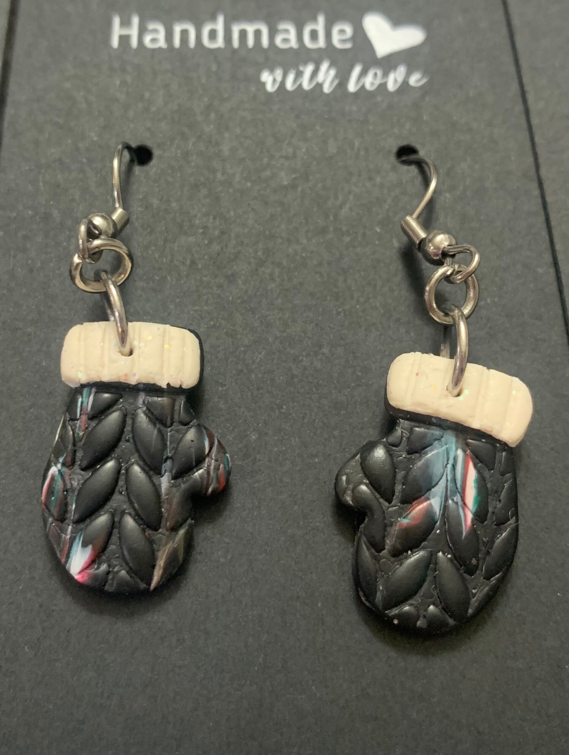 Don’t forget your winter mitts! These earrings are so cute! Can be personalized into a colour or colour combination you would like. Handcrafted in Canada, cozy up by the fire with a hot cocoa sporting your cozy cute earrings.